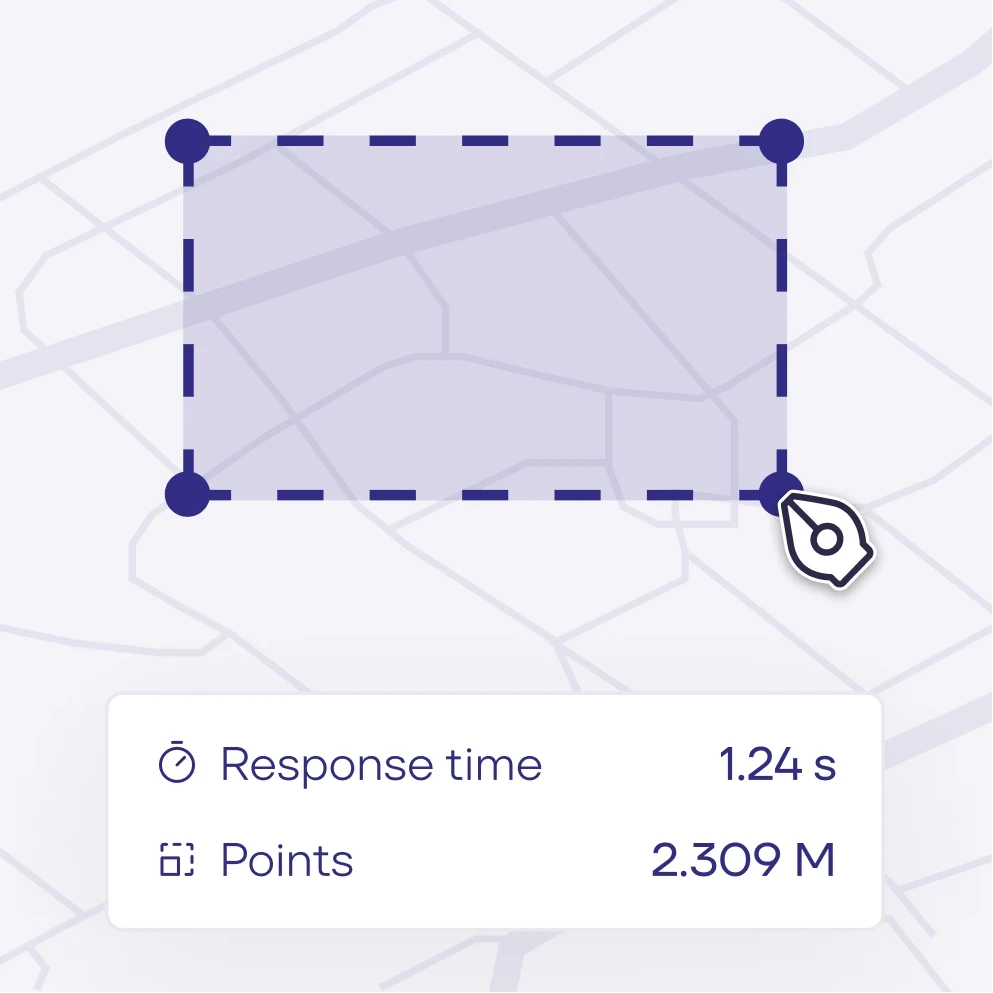 Our spatial indexing makes national-scale archives instantly searchable and ready for automated analysis. You don’t have to spend days of manual inspection with sub-second queries, significantly reducing your time-to-insight.